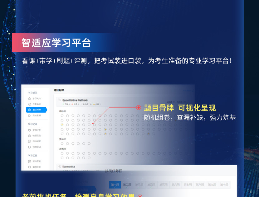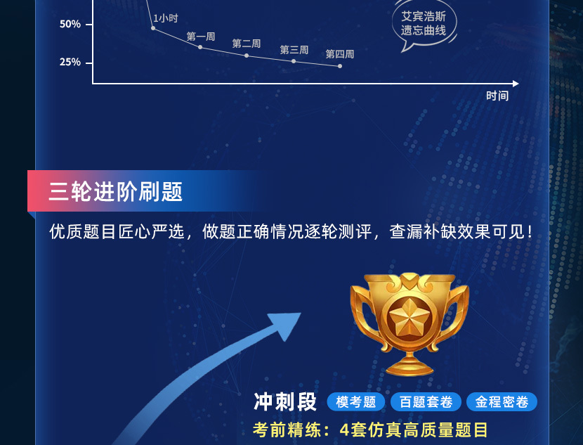 适合需要系统学习、打牢基础的学员。包含前导+基础+强化+冲刺4个学习阶段,经典题+百题2大专项训练,考前提供1套密卷和2套模考。