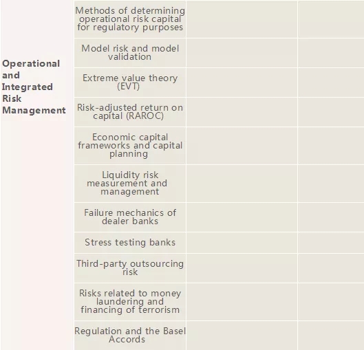至于Operational risk和Current Issues,则是FRM独具特色的科目,完全没有与CFA重合的内容。值得一提的是,GRAP协会在Operational risk中还包含了Basel Accords(巴塞尔协议),这一部分其实并不能附属于操作风险,但巴塞尔协议是银行业的“圣经”,所以在CFA这个打造基金经理的考试中也是完全没有涉及的。